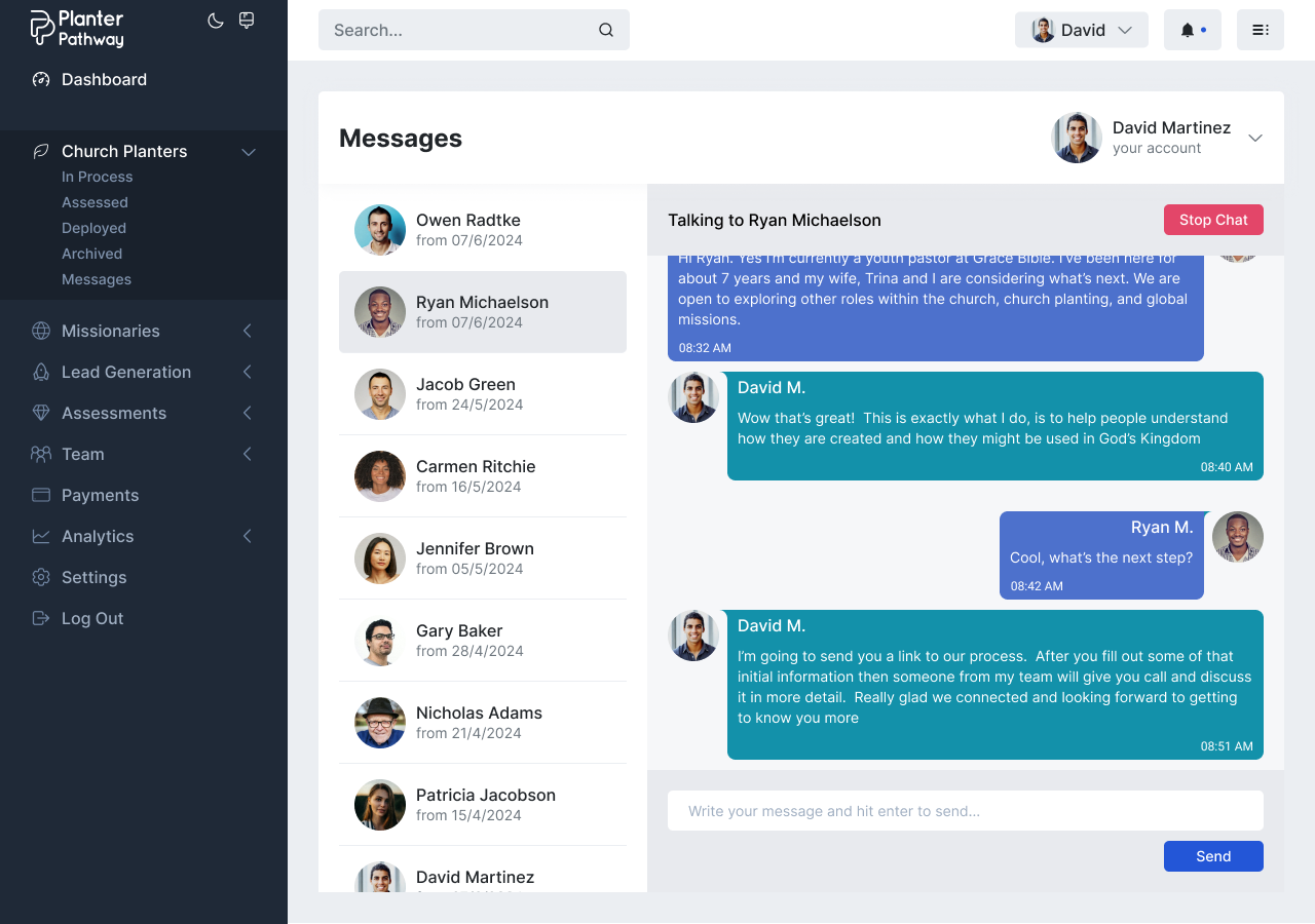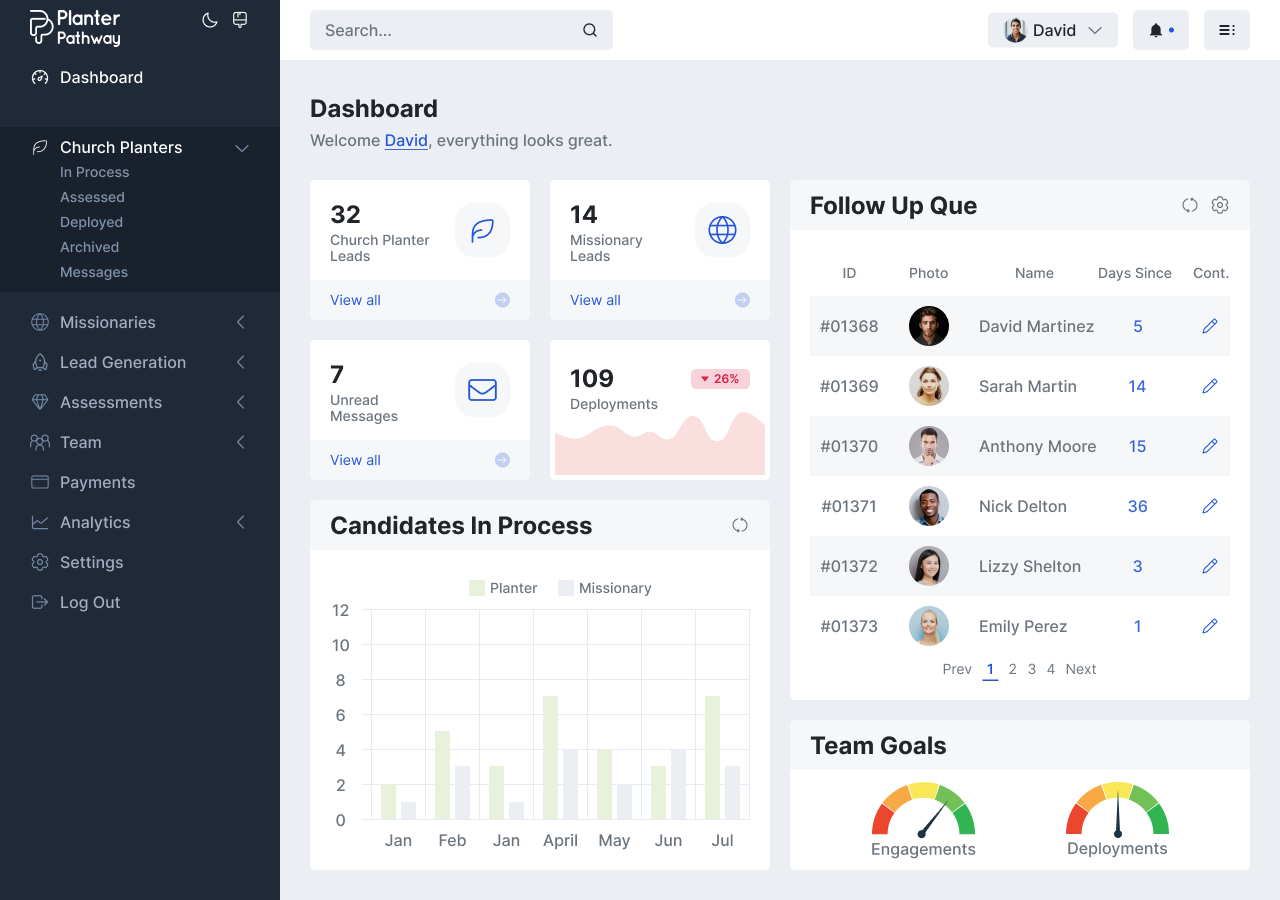 PlanterPathway perfectly blends plug-and-play core features with extensive customization options to align with your recruitment and assessment process. This software will enhance your systems and allow you to quickly scale. Planter Pathway will increase both the quantity and quality of your church planting and missionary candidates.